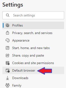 - Typing edge://settings/defaultBrowser in the address bar and pressing Enter, or