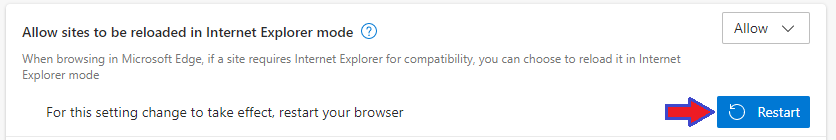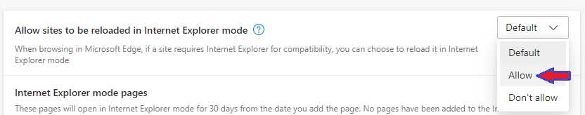 Change the Allow sites to be reloaded in Internet Explorer mode to